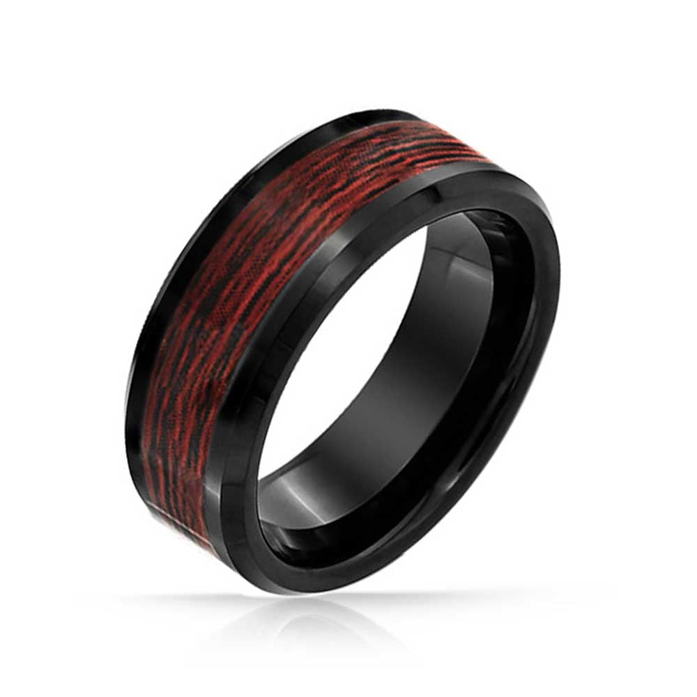 Bling Jewelry Koa Wood Inlay Black Wedding Band Tungsten Rings For